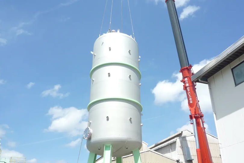 多様な現場でタンクの撤去から新しいタンクの据付までを実施。大型重量物の運搬にはレッカーを使用します。